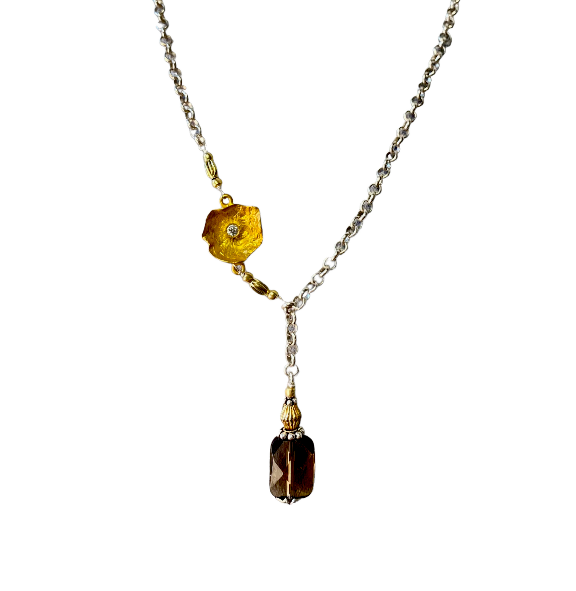 Die modische Blumenkette Gloria ist aus unserer Blumenkollektion. Die Gloriablume strahlt Eleganz aus und wird Dich auf Deinem Weg als Glücksbringer begleiten. Die neben der Gloriablume verwendeten Smocky Baguette Stein trägt zur Schönheit dieser Arbeit bei und sorgen für ein originelles Design.
