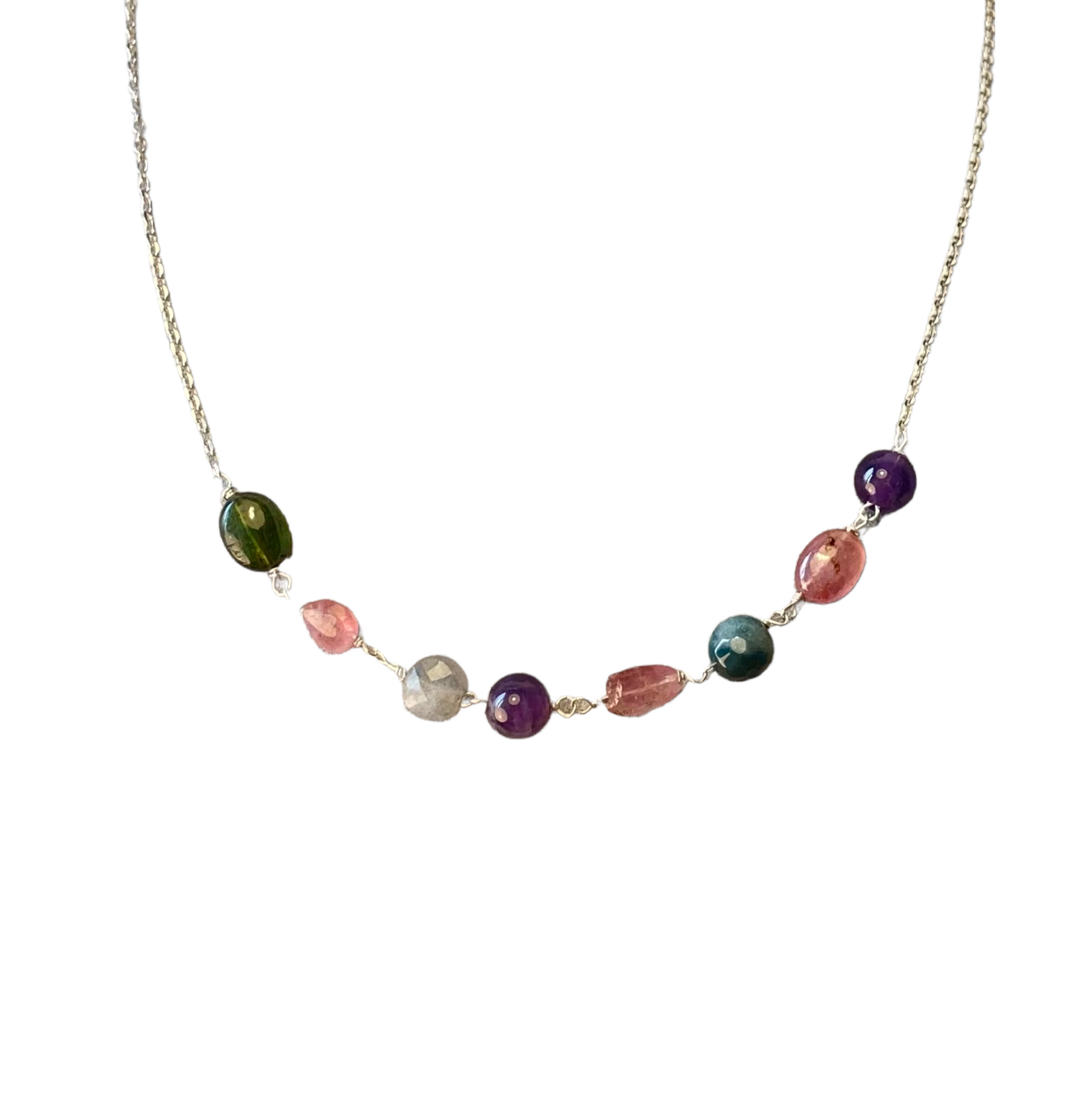 Diese einzigartige handgemachte Silberkette enthält eine vielzahl zarte und wunderschöne amities und Tumalin-Steine