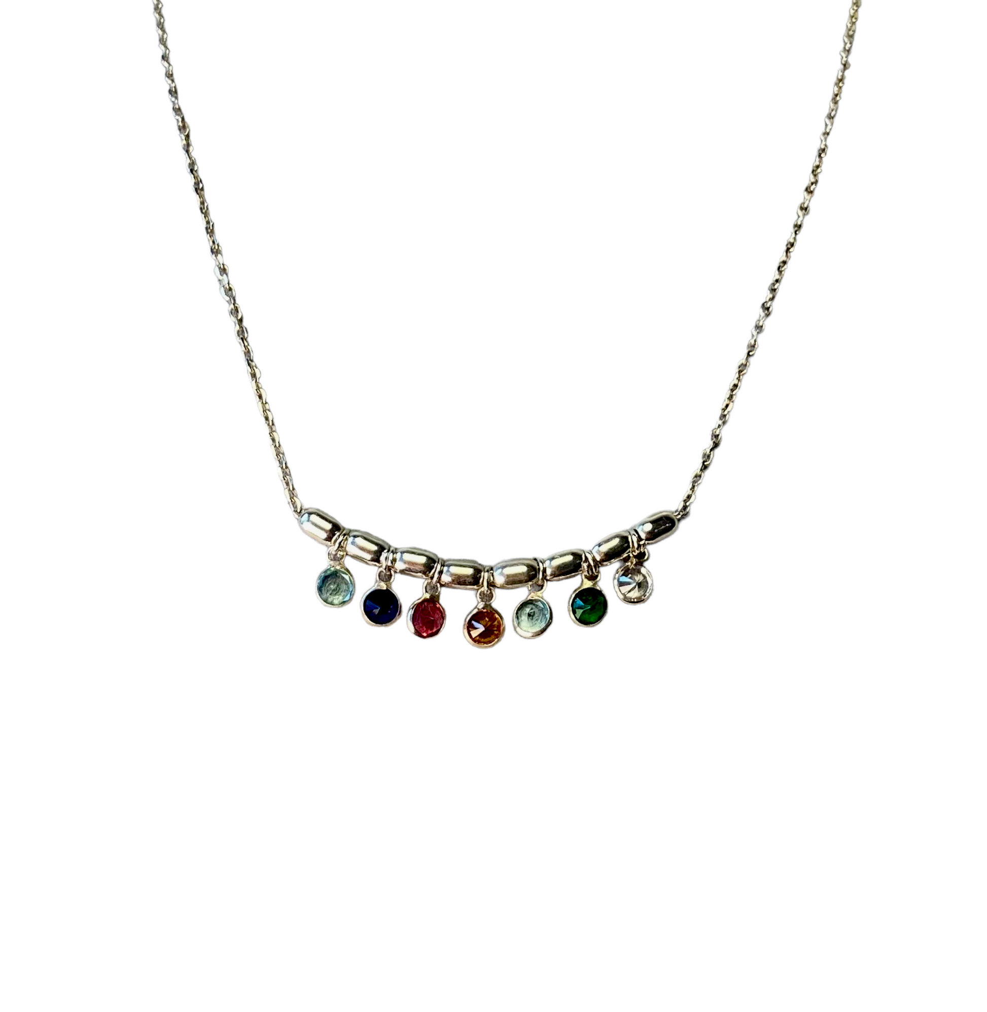Diese einzigartige handgemachte Kette mit zarten und bunten Steinen wird eine sehr besondere Wirkung haben.