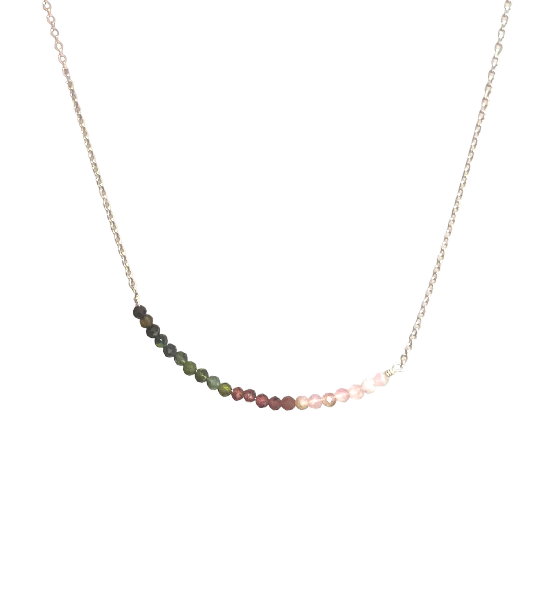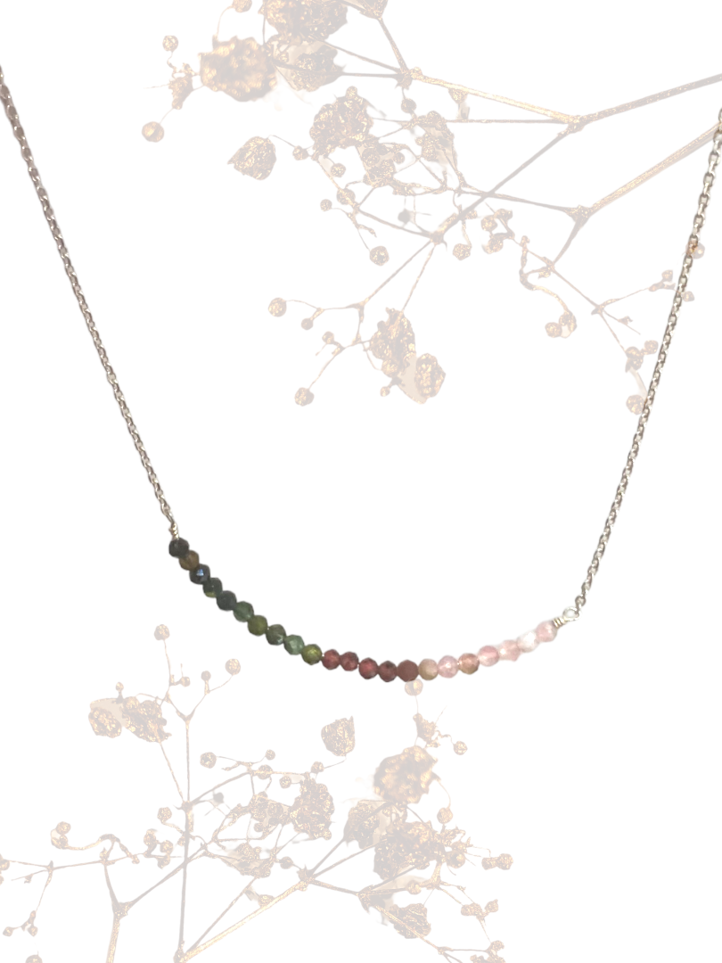 Der Turmalinstein kommt in verschiedenen Farben vor. In der Heilstein-Kunde wird erläutert, dass der grüne Turmalin das Herz kräftigt und gleichzeitig die Venen und Arterien für den Sauerstoffaustausch in der Lunge fördert. Dadurch wirkt er vorbeugend gegen Lungenerkrankungen und säubert das Blut. Diese einzigartige handgemachte Silberkette mit zarten und schönen Turmalinsteine wird eine sehr besondere Wirkung haben.